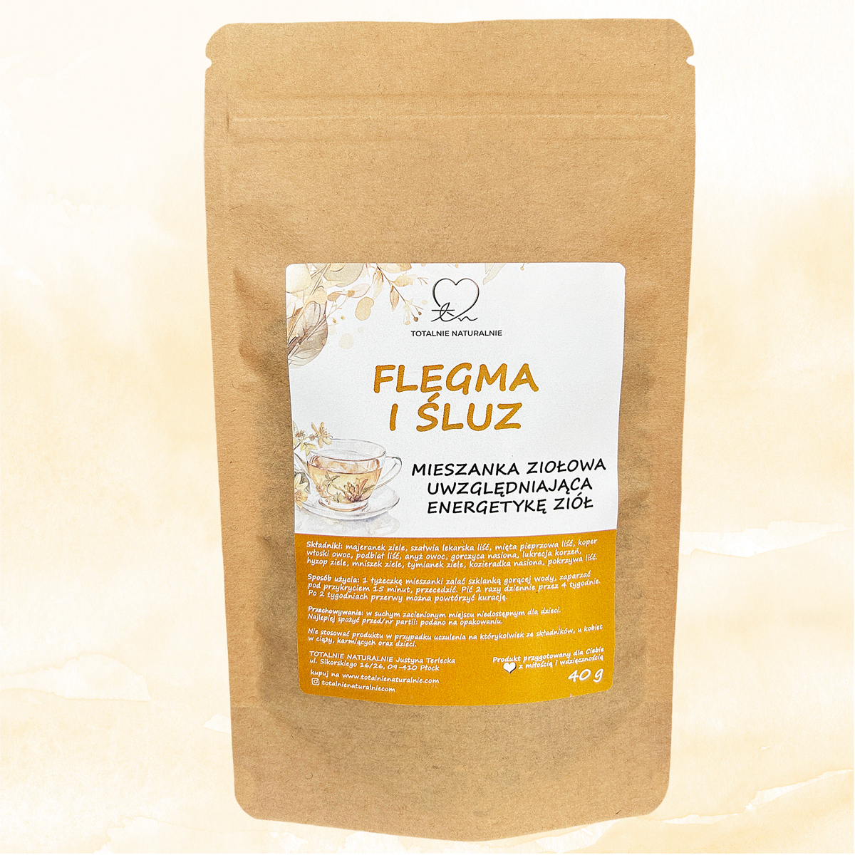 Nasza specjalnie skomponowana mieszanka ziołowa FLEGMA I ŚLUZ będzie działała wielokierunkowo. Pomoże organizmowi w pozbyciu się zalegającej flegmy i śluzu (zarówno zimnego, jak i gorącego), będzie łagodziła uporczywy kaszel towarzyszący odkrztuszaniu flegmy oraz wzmocni organy powiązane z jakością śluzu – śledzionę, płuca i nerki. Mieszanka sprawdzi się również kiedy doskwiera katar (w tym katar sienny alergiczny) oraz w problemach z zatokami (zapalenie zatok, zatkane zatoki, ból głowy).